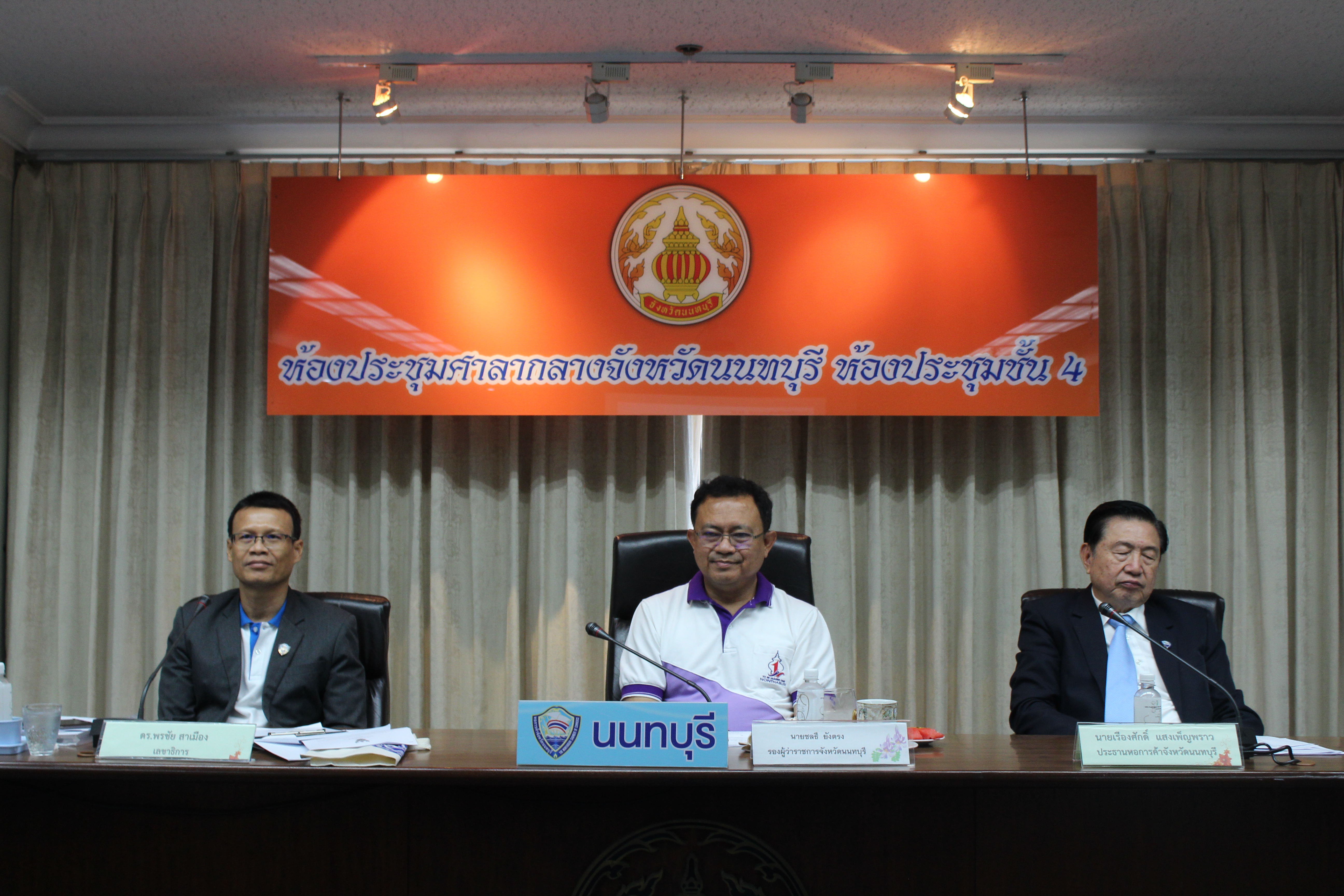 -ข่าว@นนทบุรี “เป็นเมืองที่อยู่อาศัยคุณภาพดี” วันที่ 18 ธันวาคม 2562 เวลา 13.00 น. ณ ห้องประชุมตลาดขวัญ ชั้น 4 ศาลากลางจังหวัดนนทบุรี : นายชลธี ยังตรง รองผู้ว่าราชการจังหวัดนนทบุรีเป็นประธานในการประชุมคณะกรรมการหอการค้าจังหวัดนนทบุรี ประจำเดือน ธันวาคม พ.ศ.2562 ในการนี้ นายพนม สิงห์สาย พัฒนาการจังหวัดนนทบุรี มอบหมายให้ นางวชิรพร แจ้งเอี่ยม หัวหน้ากลุ่มงานส่งเสริมการพัฒนาชุมชน เข้าร่วมประชุม ประเด็นนำเสนอในที่ประชุม ได้แก่ 1)การรณรงค์ กระเช้า OTOP ของขวัญปีใหม่ 2)งาน OTOP CITY 2019 3) ถนนคนเดิน “เดิน กิน ชิม เที่ยว ท่าน้ำนนท์”
