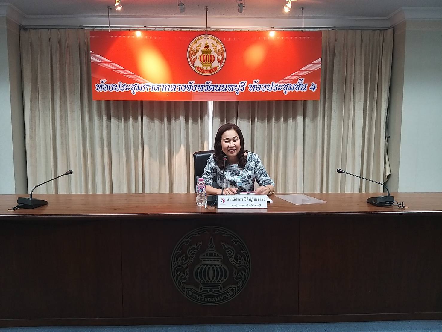 นนทบุรี ”เป็นเมืองที่อยู่อาศัยคุณภาพดี” วันที่ 25 ธันวาคม 2562 เวลา 14.00 น ณ ห้องประชุมตลาดขวัญ ชั้น 4 (อาคาร 5 ชั้น ) ศาลากลางจังหวัดนนทบุรี : นางนิศากร วิศิษฎ์สรอรรถ รองผู้ว่าราชการจังหวัดนนทบุรี เป็นประธานในการประชุมคณะอนุกรรมการบริหารกองทุนพัฒนาบทบาทสตรีระดับจังหวัด จังหวัดนนทบุรี ครั้งที่ 10/2562 นายพนม สิงห์สาย พัฒนาการจังหวัดนนทบุรี เลขาคณะอนุกรรมการฯ นำเสนอผลการดำเนินงานกองทุนพัฒนาบทบาทสตรีจังหวัดนนทบุรี การติดตามหนี้กองทุนพัฒนาบทบาทสตรีจังหวัดนนทบุรี การพิจารณาอนุมัติโครงการประเภทเงินอุดหนุนและเงินทุนหมุนเวียน และการปรับโครงสร้างหนี้กองทุนพัฒนาบทบาทสตรีจังหวัดนนทบุรี