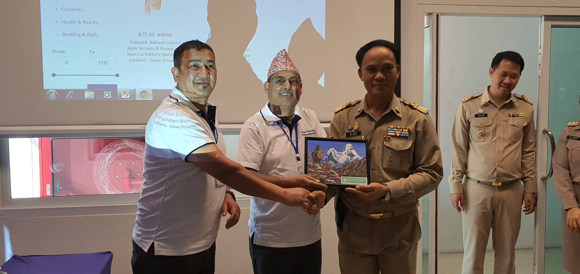 นนทบุรี “เป็นเมืองที่อยู่อาศัยคุณภาพดี” วันที่ 27 มกราคม 2563 เวลา 13.30 น. ณ ศูนย์ OTOP นนทบุรี ตำบลอ้อมเกร็ด อำเภอปากเกร็ด จังหวัดนนทบุรี : นายพนม สิงห์สาย พัฒนาการจังหวัดนนทบุรี พร้อมด้วยนักวิชาการสำนักงานพัฒนาชุมชนจังหวัดนนทบุรี ให้การต้อนรับคณะศึกษาดูงานจากชุมนุมสหกรณ์เครดิตยูเนี่ยแห่งประเทศไทย และชุมนุมสหกรณ์ออมทรัพย์แห่งประเทศไทย จำกัด ซึ่งเป็นตัวแทนสหกรณ์จากประเทศฟิลิปปินส์, อินโดนีเซีย และเนปาล จำนวน 40 ท่าน โดยเจ้าหน้าที่ได้บรรยายแก่ผู้เข้าร่วมสัมมนาในด้านการพัฒนาสังคมจากโครงการ OTOP (One Tumbon One Product) และนำคณะตัวแทนสหกรณ์ฯ เยี่ยมชมตัวอย่างผลิตภัณฑ์ OTOP จังหวัดนนทบุรี