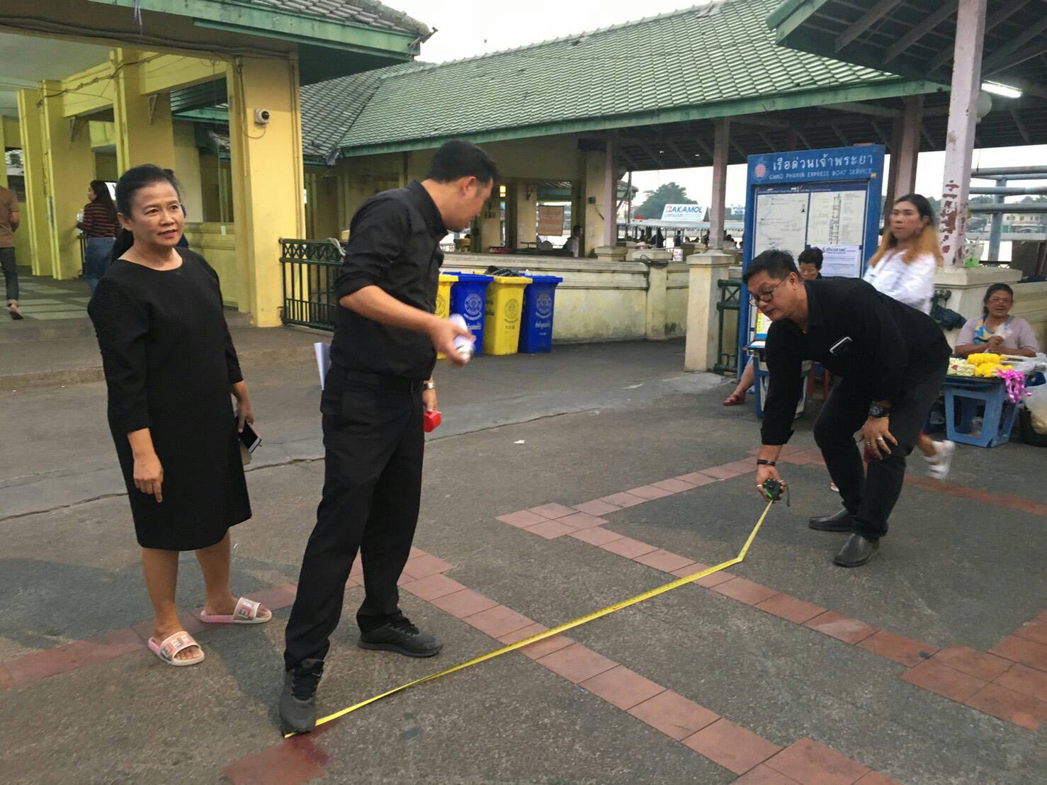 เตรียมพื้นที่ที่ผู้ประกอบการและร้านค้าอื่นๆ จะร่วมออกร้านจำหน่ายสินค้า ภายในงาน “เดิน กิน ชิม เที่ยว ท่าน้ำนนท์ จังหวัดนนทบุรี” ระหว่างวันที่ 13-16 กุมภาพันธ์ 2563