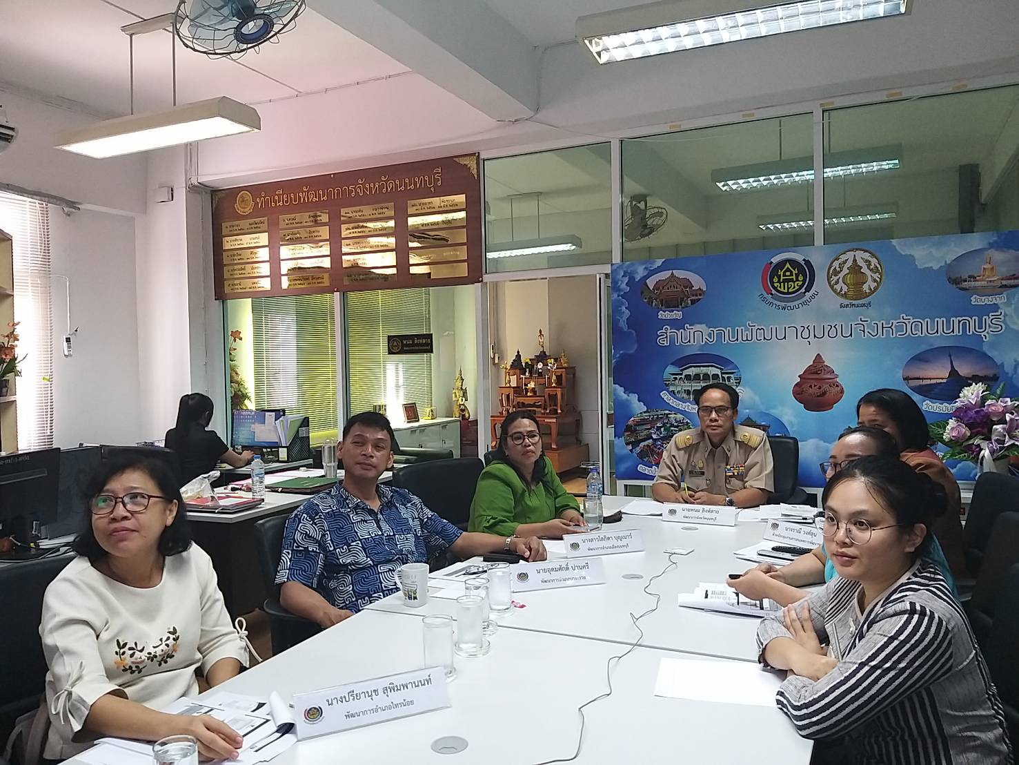 นายพนม สิงห์สาย พัฒนาการจังหวัดนนทบุรี หัวหน้ากลุ่มงาน พัฒนาการอำเภอ นักวิชาการพัฒนาชุมชน และเจ้าหน้าที่กองทุนพัฒนาบทบาทสตรี ร่วมประชุม ในการนี้ นายพนม สิงห์สายพัฒนาการจังหวัด ได้กำชับให้ทุกอำเภอดำเนินการขับเคลื่อนกองทุนพัฒนาบทบาทสตรีให้เป็นไปตาม แนวทางปฏิบัติ ระเบียบกฏหมายอย่างเคร่งครัด