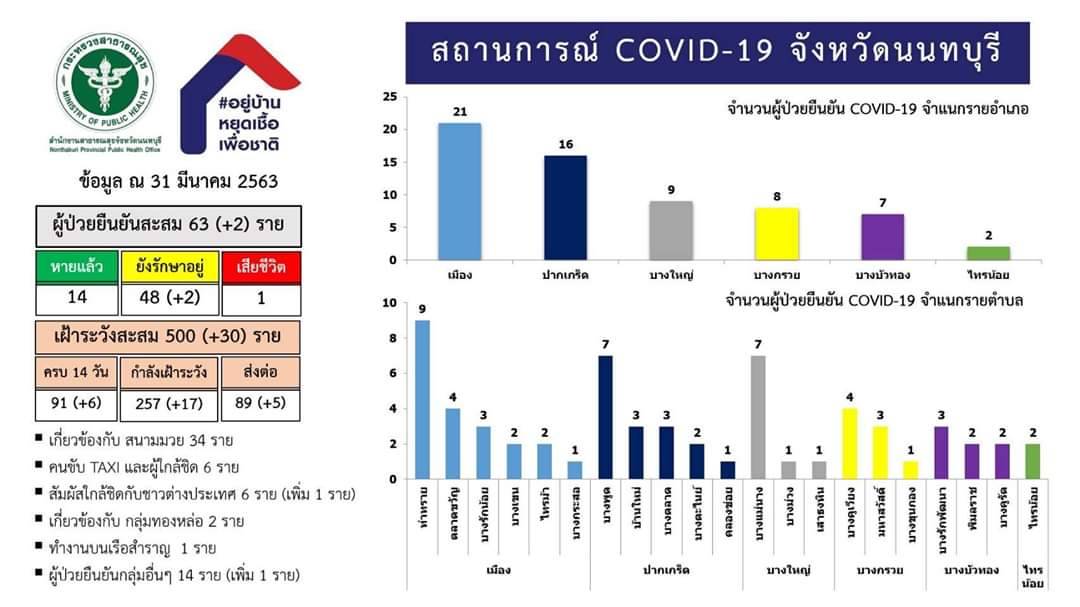 -ข่าว@นนทบุรี “เป็นเมืองที่อยู่อาศัยคุณภาพดี” วันที่ 1 เมษายน 2563 เวลา 09.30 น. ณ ห้องประชุม ชั้น 5 ห้องรัตนา ธิเบศร์ : นายสุจินต์ ไชยชุมศักดิ์ ผู้ว่าราชการจังหวัดนนทบุรี เป็นประธานในการประชุม คณะกรรมการดำเนินการป้องกันหรือยับยั้งภัยพิบัติที่จะเกิดขึ้นในเวลาอันใกล้ ร่วมกับ คณะกรรมการโรคติดต่อจังหวัดนนทบุรี เรื่องสถานการณ์การแพร่ระบาดโรคติดเชื้อ Coronavirus disease 2019 (COVID-19) จังหวัดนนทบุรี และได้ประกาศจังหวัดนนทบุรีเรื่องขอความร่วมมือประชาชนงดออกนอกเคหสถาน และบุคลากรที่ต้องบริการประชาชนใกล้ชิดให้ใส่ face shield ในการนี้ นายพนม สิงห์สาย พัฒนาการจังหวัดนนทบุรี มอบหมายให้ นางวชิรพร แจ้งเอี่ยม หัวหน้ากลุ่มงานส่งเสริมการพัฒนาชุมชน เข้าร่วมประชุม