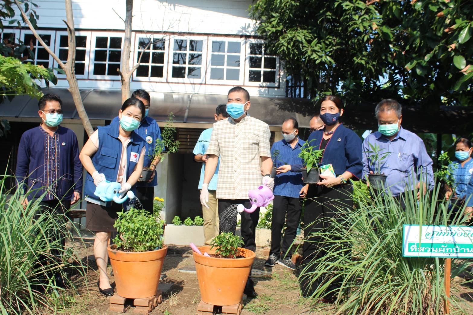 @นนทบุรี : วันที่ 17 เมษายน 2563 ณ จวนผู้ว่าราชการจังหวัดนนทบุรี นายสุจินต์ ไชยชุมศักดิ์ ผู้ว่าราชการจังหวัดนนทบุรี และแพทย์หญิงสุวรรณา ไชยชุมศักดิ์ นายกเหล่ากาชาดจังหวัดนนทบุรี เปิดจวนผู้ว่าราชการจังหวัดนนทบุรี เปิดปฏิบัติการ 90 วัน ปลูกผักสวนครัว เพื่อสร้างความมั่นคงทางอาหาร “สุขที่ยั่งยืน ที่สวนผักบ้านเรา” สวนสวยกินได้ โดยทำการปลูกพริก โหระพา กระเพรา แมงลัก ตะไคร้ มะกรูด สะระแหน่ ผักบุ้ง คะน้า และกวางตุ้ง ที่จัดขึ้นโดยสำนักงานพัฒนาชุมชนจังหวัดนนทบุรี โดยมีหัวหน้าส่วนราชการ โยธาธิการและผังเมืองจังหวัดนนทบุรี เกษตรจังหวัดนนทบุรี พัฒนาการจังหวัดนนทบุรี พัฒนาการอำเภอ และผู้ใหญ่บ้าน หมู่ที่ 5 ตำบลปลายบาง อำเภอบางกรวย เข้าร่วม
