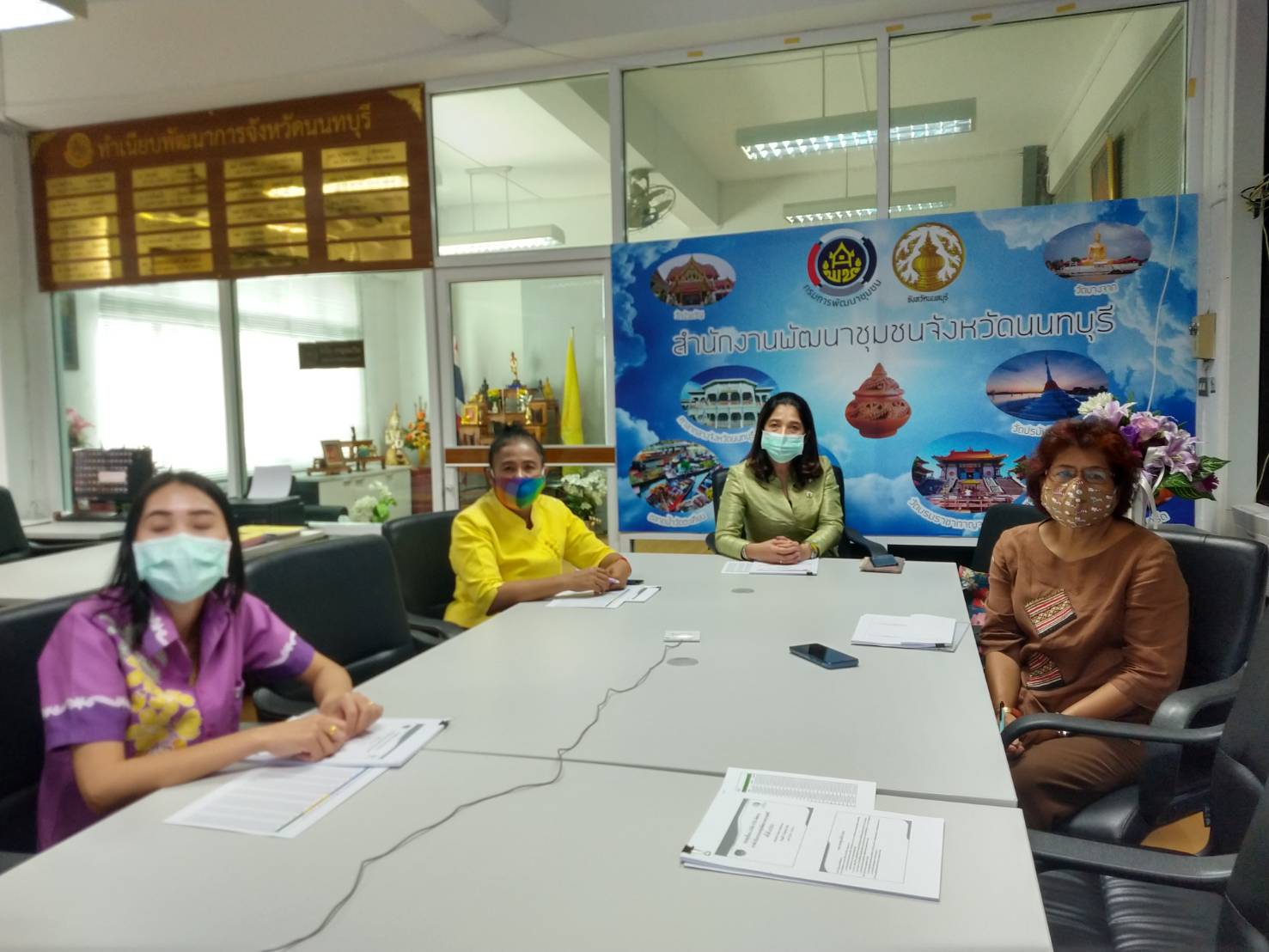ในการนี้ นางรักใจ กาญจนะวีระ พัฒนาการจังหวัดนนทบุรี พร้อมด้วยนางวชิรพร แจ้งเอี่ยม หัวหน้ากลุ่มงานส่งเสริมการพัฒนาชุมชน นางสุขศรี เดชฤดี หัวหน้าคณะทำงานกองทุนพัฒนาบทบาทสตรีจังหวัดนนทบุรี และเจ้าหน้าที่กองทุนพัฒนาบทบาทสตรีจังหวัดนนทบุรี เข้าร่วมรับฟังการประชุมครั้งนี้ ณ ห้องประชุมสำนักงานพัฒนาชุมชน ชั้น 2 ศาลากลางจังหวัดนนทบุรี พร้อมมอบหมายให้ผู้เกี่ยวข้องนำไปปฏิบัติตามข้อสั่งการอย่างเคร่งครัด