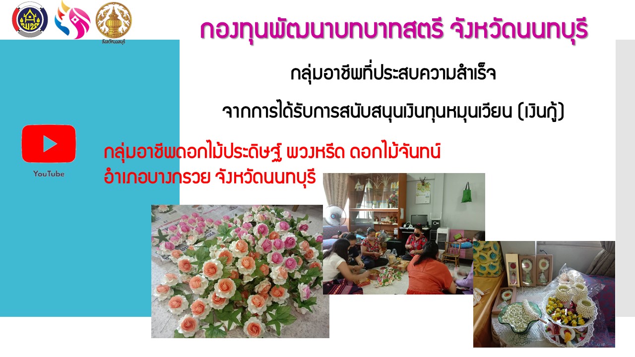 กองทุนพัฒนาบทบาทสตรีจังหวัดนนทบุรี : กลุ่มอาชีพดอกไม้ประดิษฐ์ พวงหรีด ดอกไม้จันทน์ 12 ตุลาคม 63 / 14.55 น. (Visited 1 times, 1 visits today)Facebook iconFacebookTwitter iconTwitterLINE iconLine