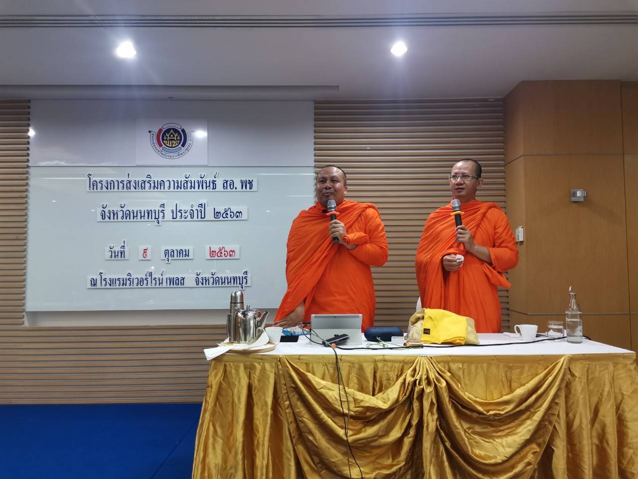 วันที่ 9 ตุลาคม 2563 ณ โรงแรมริเวอร์ไรน์ เพลส อำเภอเมืองนนทบุรี จังหวัดนนทบุรี นางรักใจ กาญจนะวีระ พัฒนาการจังหวัดนนทบุรี พร้อมด้วยนางสาวโสภิดา บุญเนาว์ นางวชิรพร แจ้งเอี่ยม ในฐานะผู้แทนสมาชิก สอ.พช. ผู้อำนวยการกลุ่มงาน พัฒนาการอำเภอ ข้าราชการบำนาญสมาชิกสหกรณ์ออมทรัพย์กรมการพัฒนาชุมชน และเจ้าหน้าที่สำนักงานพัฒนาชุมชนจังหวัดนนทบุรี ผนึกกำลังดำเนินกิจกรรมโครงการส่งเสริมความสัมพันธ์ สอ.พช. ประจำปี 2563