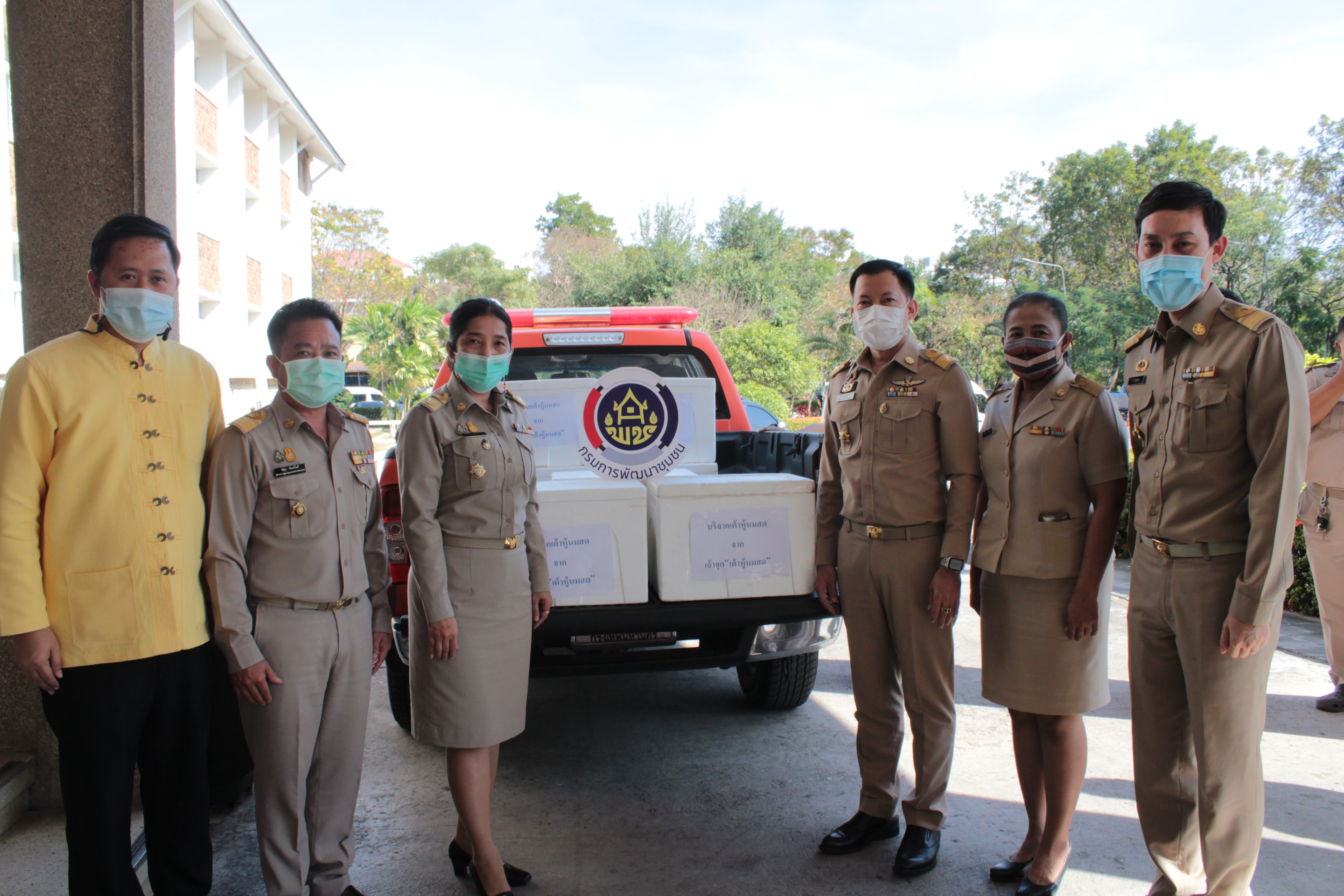 วันที่ 4 มกราคม 2564 เวลา 15.00 น. ณ ศาลากลางจังหวัดนนทบุรี นายอภิชัย อร่ามศรี รองผู้ว่าราชการจังหวัดนนทบุรี รับมอบผลิตภัณฑ์ OTOP ของจังหวัดนนทบุรี ได้แก่ เต้าหู้นมสด “เจ้าจุก” จำนวน 2,000 กระปุก มูลค่า 50,000 บาท โดยมีนางรักใจ กาญจนะวีระ พัฒนาการจังหวัดนนทบุรี พร้อมด้วย ผู้อำนวยการกลุ่มงาน และเจ้าหน้าที่สำนักงานพัฒนาชุมชนจังหวัดนนทบุรี เป็นผู้แทนในการมอบผลิตภัณฑ์ในวันนี้ เพื่อให้ศูนย์ปฏิบัติการเหตุการณ์การแพร่ระบาดของโรคโควิด-19 (COVID-19) จังหวัดนนทบุรี นำไปมอบให้กับผู้ที่ได้รับผลกระทบจากการแพร่ระบาดของเชื้อไวรัสโคโรนา 2019 (COVID-19) โดยเฉพาะผู้ที่ถูกกักตัว และอาศัยในเขตอาคารที่เป็นพื้นที่ควบคุมสูงสุด