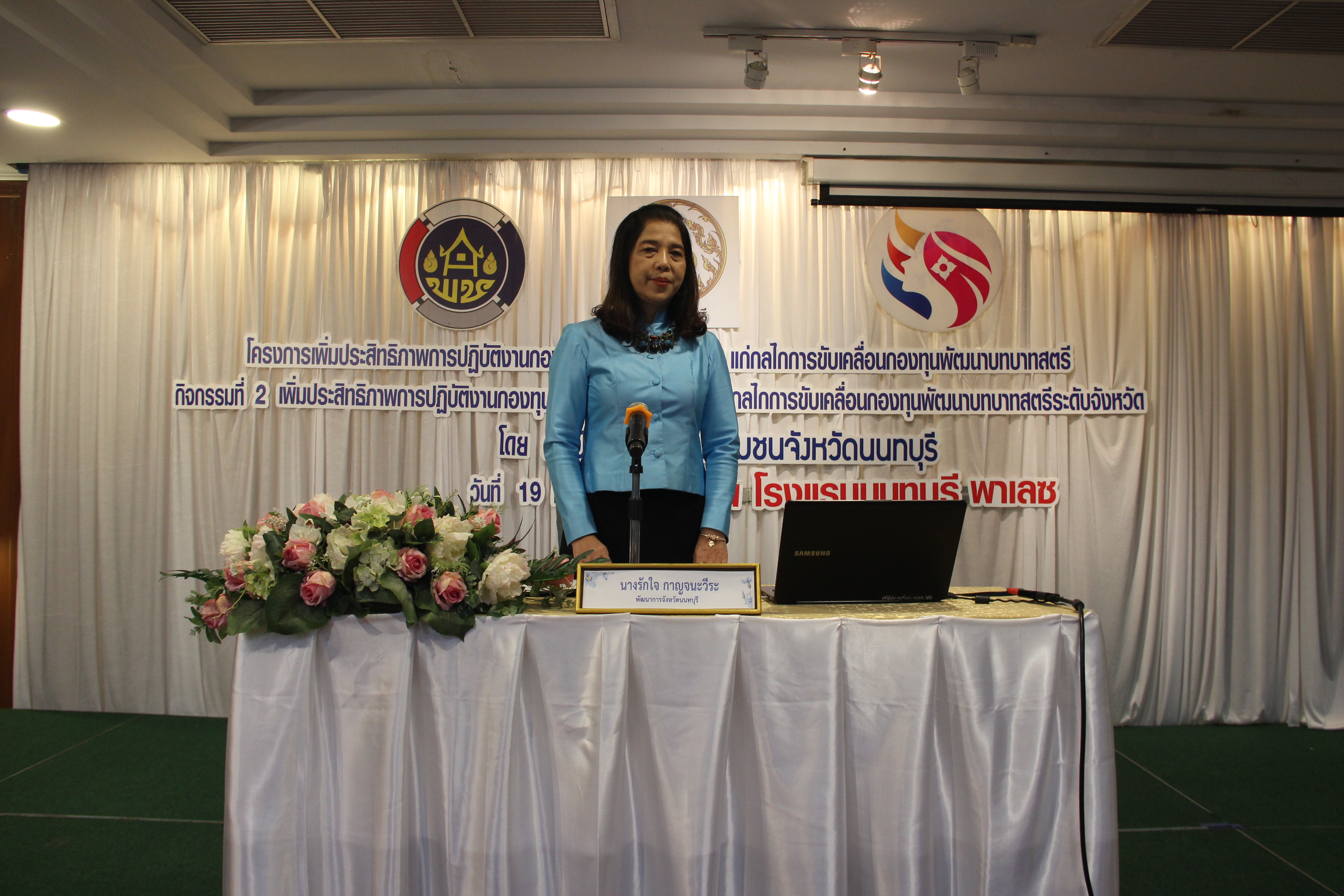 วันที่ 19 กุมภาพันธ์ 2564 ณ โรงแรมนนทบุรีพาเลซ อำเภอเมืองนนทบุรี นางรักใจ กาญจนะวีระ พัฒนาการจังหวัดนนทบุรี เป็นประธานในพิธีเปิดโครงการเพิ่มประสิทธิภาพการปฏิบัติงานกองทุนพัฒนาบทบาทสตรี แก่กลไกการขับเคลื่อนกองทุนพัฒนาบทบาทสตรีระดับจังหวัด มีกลุ่มเป้าหมายเป็นคณะทำงานขับเคลื่อนกองทุนพัฒนาบทบาทสตรีจังหวัด คณะทำงานขับเคลื่อนกองทุนพัฒนาบทบาทสตรีตำบล/เทศบาล เจ้าหน้าที่พัฒนาชุมชนผู้รับผิดชอบงานกองทุนพัฒนาบทบาทสตรี และเจ้าหน้าที่กองทุนพัฒนาบทบาทสตรีจังหวัดนนทบุรี