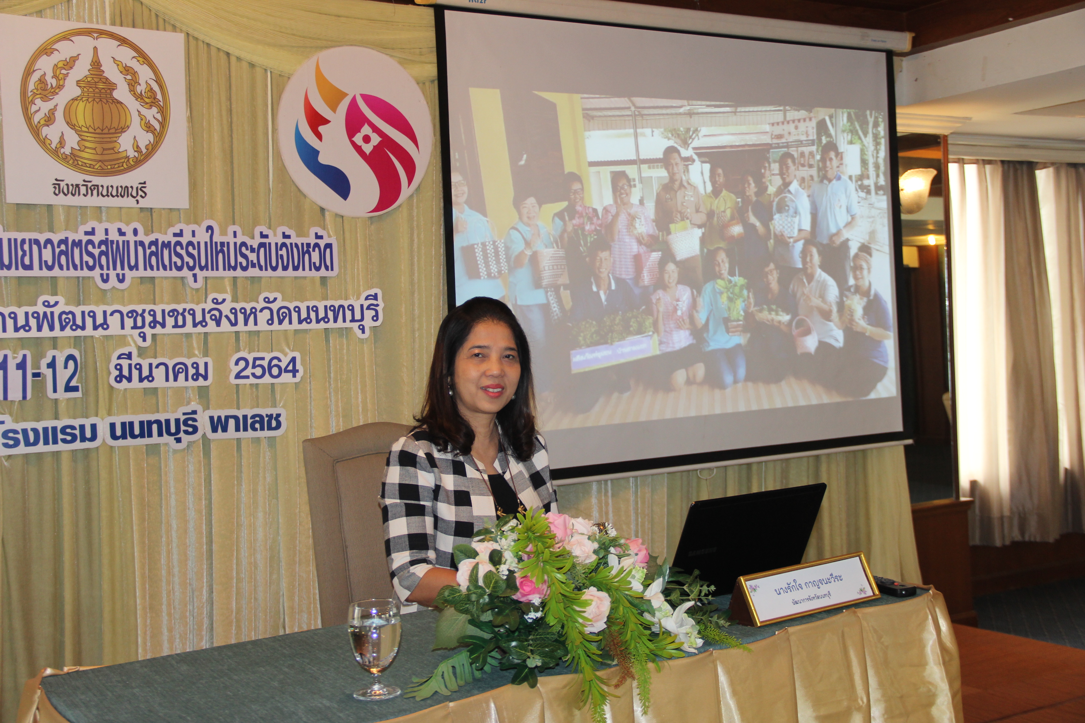 วันนี้ 11 มีนาคม 2564 ณ โรงแรมนนทบุรี พาเลซ อำเภอเมืองนนทบุรี จังหวัดนนทบุรี นางรักใจ กาญจนะวีระ พัฒนาการจังหวัดนนทบุรี เป็นประธานในพิธีเปิดโครงการส่งเสริมเยาวสตรีสู่ผู้นำสตรีรุ่นใหม่ระดับจังหวัด โดยมีนางวชิรพร แจ้งเอี่ยม ผู้อำนวยการกลุ่มงานส่งเสริมการพัฒนาชุมชน เป็นผู้กล่าววัตถุประสงค์ความเป็นมาของการดำเนินกิจกรรมโครงการครั้งนี้ สำหรับกลุ่มเป้าหมาย ประกอบด้วย กลุ่มเยาวชนสตรี ที่มีอายุตั้งแต่ 15 ปีขึ้นไป ในจังหวัดนนทบุรี จำนวน 26 คน