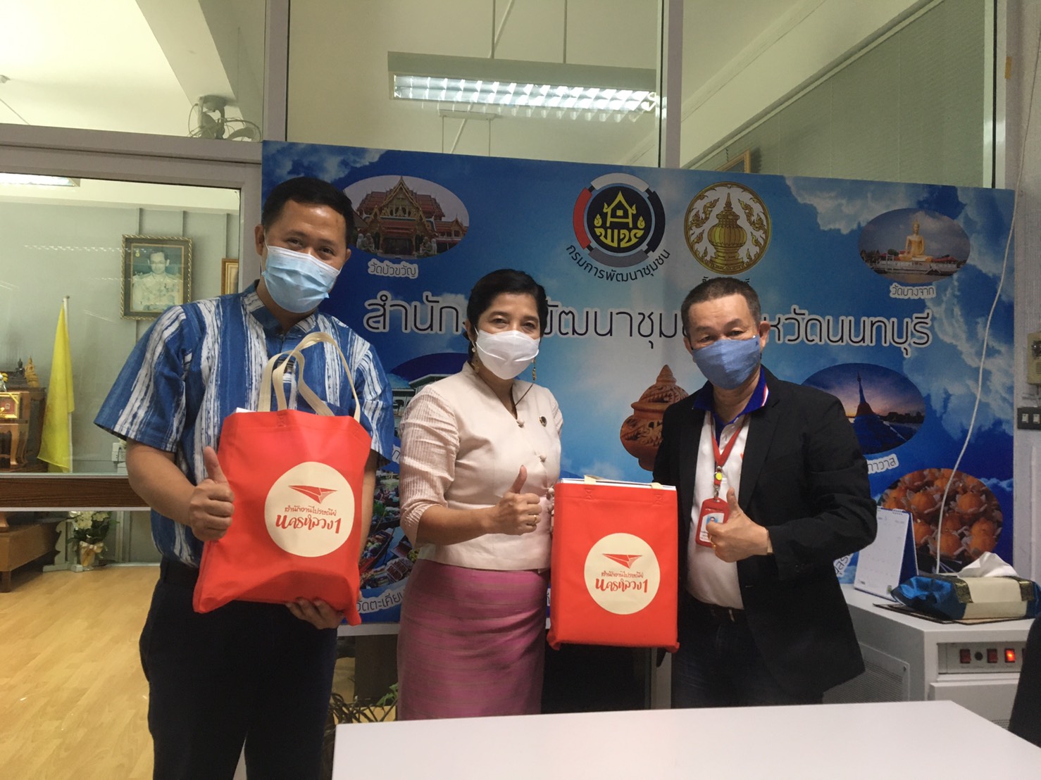 วันนี้ (22 มิถุนายน 2564) นางรักใจ กาญจนะวีระ พัฒนาการจังหวัดนนทบุรี ดำเนินการประชุมร่วมกับ นายอัครพล เหลืองทอง หัวหน้าส่วนการตลาดและลูกค้าธุรกิจ สำนักงานไปรษณีย์นครหลวง ในฐานะผู้แทนบริษัท ไปรษณีย์ไทย จำกัด ในเรื่องการประสานความร่วมมือในการส่งเสริมและสนับสนุนผลิตภัณฑ์ OTOP ของจังหวัดนนทบุรี โดยบริษัทไปรษณีย์ไทย มีแนวคิดนโยบายที่จะส่งเสริมสินค้าผลิตภัณฑ์ OTOP และผลิตภัณฑ์ชุมชนที่มีคุณภาพ โดยจะดำเนินการจัดจำหน่ายบนแพลตฟอร์มการจำหน่ายสินค้าผ่านช่องทางออนไลน์เว็บไซต์ Amazon ซึ่งเป็นผู้ให้บริการจำหน่ายสินค้าออนไลน์รายใหญ่ระดับโลก