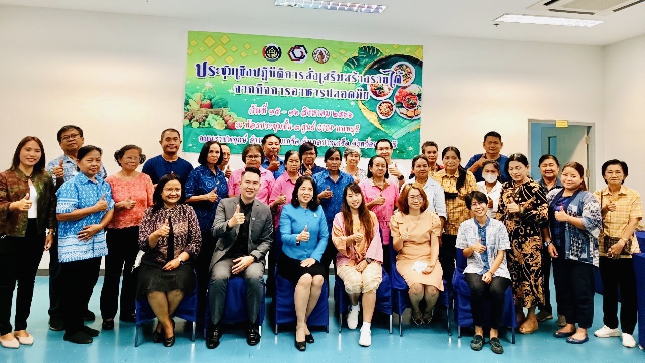 วันที่ 15 สิงหาคม 2566 เวลา 10.00 น. นางรักใจ กาญจนะวีระ พัฒนาการจังหวัดนนทบุรี ได้เข้าร่วมแลกเปลี่ยนแนวทางการขับเคลื่อนสนับสนุน กับทีมวิทยากรในการประชุมเชิงปฏิบัติการส่งเสริมการสร้างรายได้จากกิจการอาหารปลอดภัย ตามโครงการส่งเสริมการสร้างรายได้จากกิจการอาหารปลอดภัย จากบริษัทประชารัฐรักสามัคคีจังหวัดนนทบุรี บริษัทประชารัฐรักสามัคคีจังหวัดพิษณุโลก สาธารณสุขจังหวัดนนทบุรี สถาบันการจัดการปัญญาภิวัฒน์ และผู้ประกอบการ OTOP นนทบุรี ระดับ 5 ดาว ในการบูรณาการสร้างรู้ความเข้าในการส่งเสริมการสร้างรายได้จากกิจการอาหารปลอดภัย สู่ 4 ร (โรงพยาบาล โรงเรียน โรงแรม ร้านอาหาร) ซึ่งได้เน้นกลไกการขับเคลื่อน 3 ด้าน คือ ด้านเกษตร แปรรูป และท่องเที่ยวโดยชุมชน เน้นบูรณาการ 5 ภาคส่วนทั้งภาครัฐ ภาคเอกชน ภาควิชาการ ภาคประชาสังคม และภาคประชาชนในรูปแบบประชารัฐภายใต้แนวคิด Social Enterprise