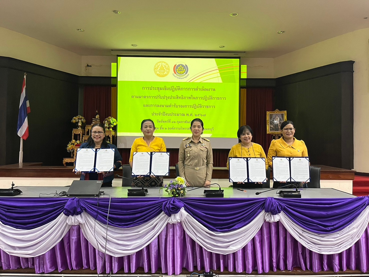ในวันจันทร์ที่ 12 กุมภาพันธ์ 2567 ณ ห้องประชุม ชั้น 2 องค์การบริหารส่วนจังหวัดนนทบุรี สำนักงานพัฒนาชุมชนจังหวัดนนทบุรี ได้ดำเนินการประชุมเชิงปฏิบัติการดำเนินงานตามมาตรการปรับปรุงประสิทธิภาพในการปฏิบัติราชการและการลงนามคำรับรองการปฏิบัติราชการ ประจำปีงบประมาณ พ.ศ. 2567 เพื่อเป็นเครื่องมือให้ผู้บริหาร และผู้ใต้บังคับบัญชาทุกระดับชั้น ได้ดำเนินกิจกรรมงานพัฒนาชุมชนให้บรรลุเป้าหมายพร้อมทั้งพัฒนาประสิทธิภาพในการทำงานอย่างมีประสิทธิภาพและประสิทธิผล และเกิดความคุ้มค่าในโครงการอย่างสูงสุด