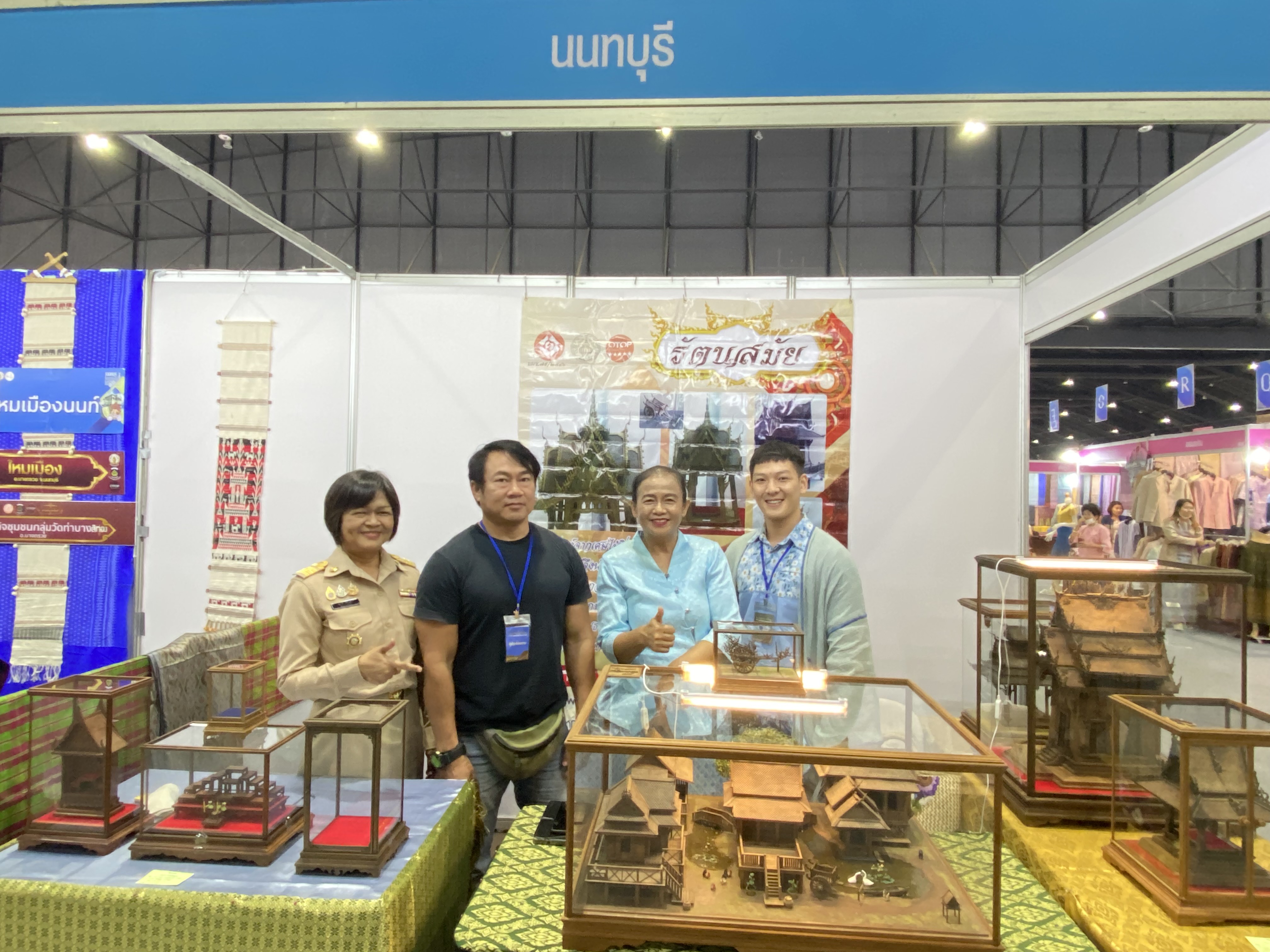 โอกาสนี้ พัฒนาการจังหวัดนนทบุรีได้เยี่ยมชมและให้กำลังใจ ผู้ประกอบการ ที่มาจัดแสดง และจำหน่ายผลิตภัณฑ์ OTOP