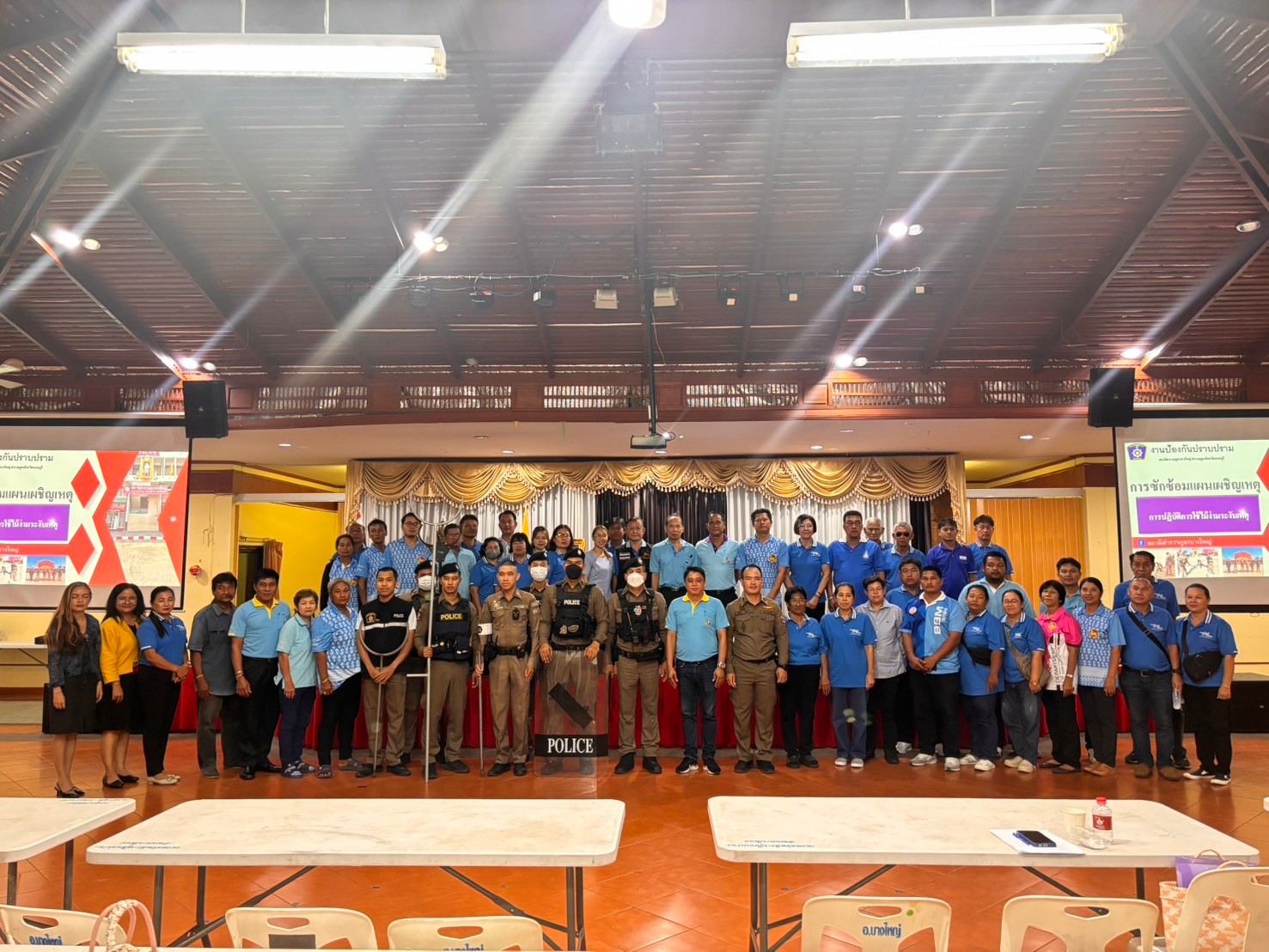 วันอังคารที่ 24 กันยายน 2567 นางสาวญาณิพัชญ์ ศรีโคตร นายอำเภอบางใหญ่ มอบหมายนายอำพรชัย วิชิตพรชัย พัฒนาการอำเภอบางใหญ่ร่วมกับเครือข่ายกองทุนแม่ฯ ดำเนินโครงการฝึกอบรมคณะกรรมการกองทุนแม่ของแผ่นดิน โดยได้รับการสนับสนุนงบประมาณจากสำนักงานป้องกันและปราบปรามยาเสพติด ภาค 1 (ป.ป.ส.ภาค 1) มีวัตถุประสงค์ให้ความรู้เรื่องการดูแลและระงับเหตุผู้ป่วยจิตเวช เพื่อส่งเสริมการสร้างเครือข่ายกองทุนแม่ของแผ่นดินในการป้องกันและแก้ไขปัญหายาเสพติด กลุ่มเป้าหมายประกอบด้วย คณะกรรมการกองทุนแม่ฯ จำนวน 50 คน ได้รับความรู้จากนางสาวณัฏฐวรรณ พันธุ์ไม้ พยาบาลวิชาชีพชำนาญการ สำนักงานสาธารณสุขอำเภอบางใหญ่ บรรยายในหัวข้อ “ความรู้เบี้องต้นเกี่ยวกับยาเสพติดยาเสพติด และการบำบัดรักษาและฟื้นฟูผู้ติดยาเสพติด” และ พ.ต.ท. ปฏิญญา ตินโย สารวัตรป้องกันปราบปราม สถานีตำรวจภูธรบางใหญ่ และคณะให้ความรู้เรื่อง “การซักซ้อมแผนเผชิญเหตุ” และมีการฝึกปฎิบัติ “การปฏิบัติการใช้ไม้ง่ามระงับเหตุ” ซึ่งการฝึกอบรมครั้งนี้มีนางสาวนิรัตน์ เกื้อเส้ง นักวิชาการพัฒนาชุมชน สำนักงานพัฒนาชุมชนจังหวัดนนทบุรี มาร่วมติดตามและสนับสนุนการดำเนินงานตามโครงการดังกล่าว ณ ศาลาประชาคมอำเภอบางใหญ่