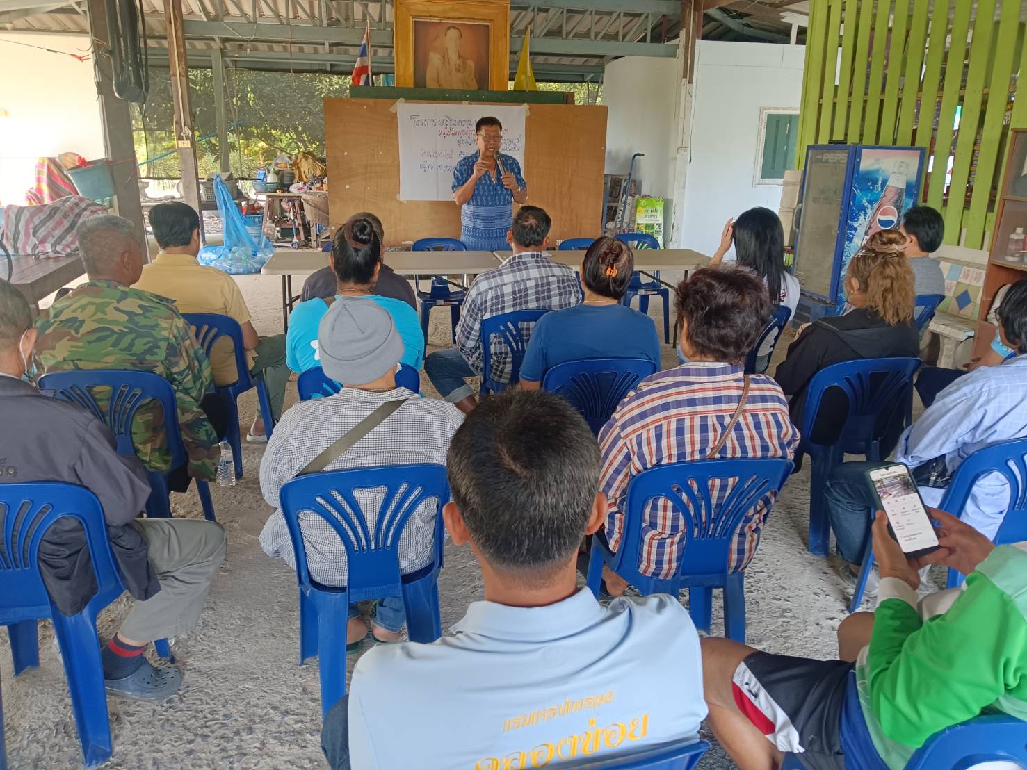 วันศุกร์ที่ 20 ธันวาคม 2567 นางสาวบุตรตรา ใจพันธ์ พัฒนาการอำเภอปากเกร็ด มอบหมายนายสมานชัย นัดดา เจ้าพนักงานพัฒนาชุมชนชำนาญงาน ดำเนินโครงการเตรียมความพร้อมหมู่บ้านแพร่ระบาดยาเสพติดพัฒนาสู่หมู่บ้านต้นกล้ากองทุนแม่ของแผ่นดิน ในพื้นที่หมู่ที่ 7 ตำบลคลองข่อย อำเภอปากเกร็ด โดยโครงการดังกล่าวกำหนดแผนการฝึกอบรม จำนวน 3 วัน มีกลุ่มเป้าหมายเข้าฝึกอบรม จำนวน 20 คน ประกอบด้วย ผู้นำชุมชน คณะกรรมการหมู่บ้าน กิจกรรมในวันที่หนึ่ง เป็นการสร้างความรู้ ความเข้าใจเกี่ยวกับแนวทางการดำเนินงานกองทุนแม่ของแผ่นดิน จากทีมวิทยากรคณะกรรมการเครือข่ายกองทุนแม่ของแผ่นดินอำเภอปากเกร็ด และยังมีหัวข้อบรรยายถึงปัจจัยสำคัญในการขับเคลื่อนงานป้องกันและแก้ไขปัญหายาเสพติดในชุมชน รวมถึงการบำบัดฟื้นฟูผู้ใช้ยาเสพติดโดยชุมชนเป็นฐาน (CBTx) และแนวทางการเฝ้าระวัง ค้นหา ส่งต่อ การบำบัดและติดตามดูแลผู้ป่วยยาเสพติดที่มีอาการทางจิต