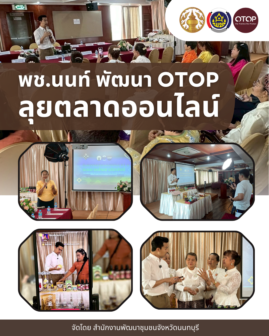 วันจันทร์ที่ 21 เมษายน 2568 สำนักงานพัฒนาชุมชนจังหวัดนนทบุรี ได้จัดกิจกรรมทดสอบตลาดออนไลน์ และจัดอบรมการ Live ขายสินค้า ให้กับผู้ประกอบการที่เข้าร่วมโครงการพัฒนาผลิตภัณฑ์ OTP โดยเครือข่ายองค์ความรู้ (Knowledge-Base OTOP : KBO) จังหวัด ณ โรงแรมนนทบุรี พาเลซ จ.นนทบุรี มีผู้ประกอบการนำผลิตภัณฑ์เข้าร่วมจำนวน 20 ราย