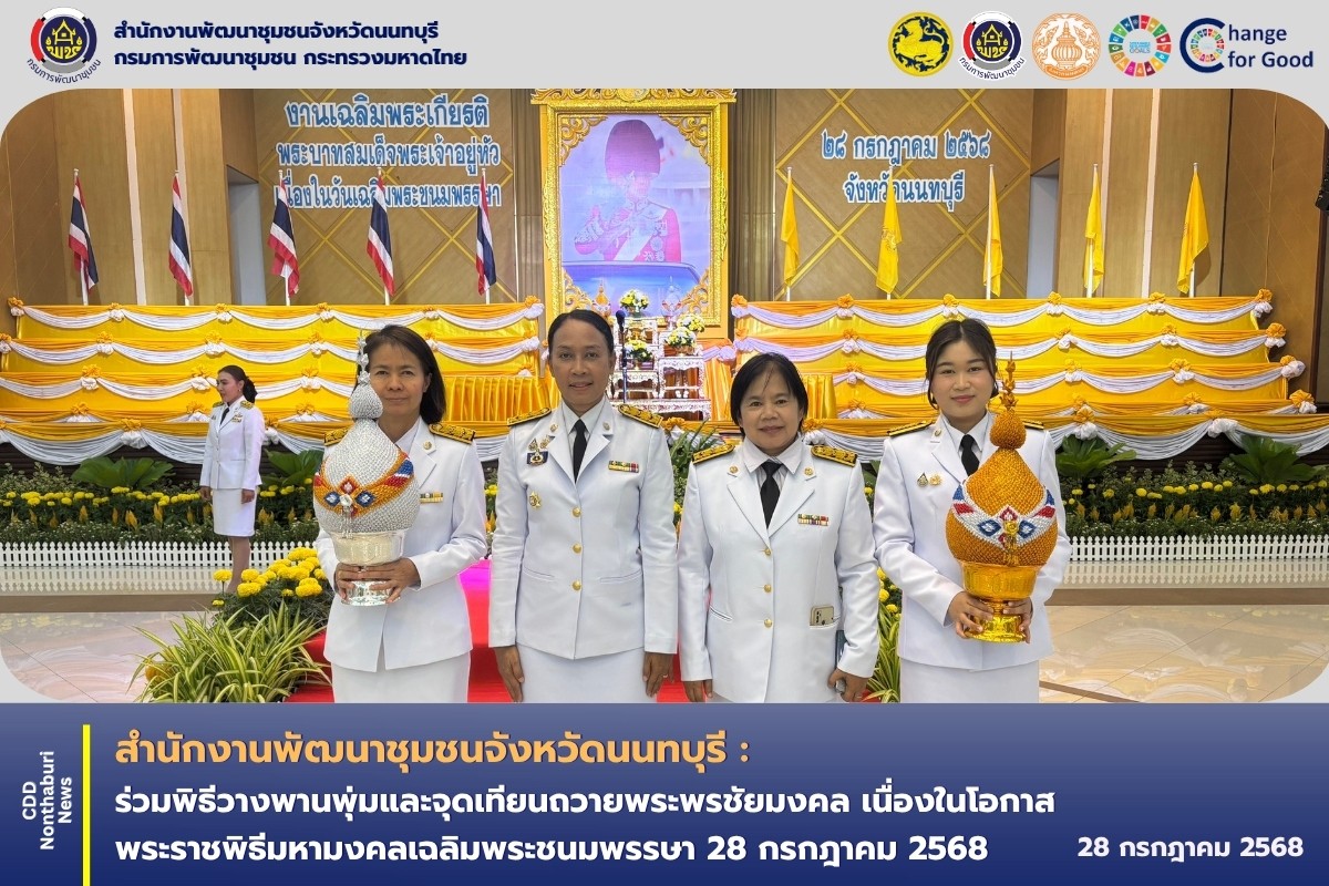 ในการนี้ นางประภา ปานนิตยกุล พัฒนาการจังหวัดนนทบุรี พร้อมด้วยนางสาวสุภาวดี เมฆฉิม ผู้อำนวยการกลุ่มงานสารสนเทศการพัฒนาชุมชน เเละเจ้าหน้าที่สำนักงานพัฒนาชุมชนจังหวัดเข้าร่วมพิธีในครั้งนี้ด้วย
