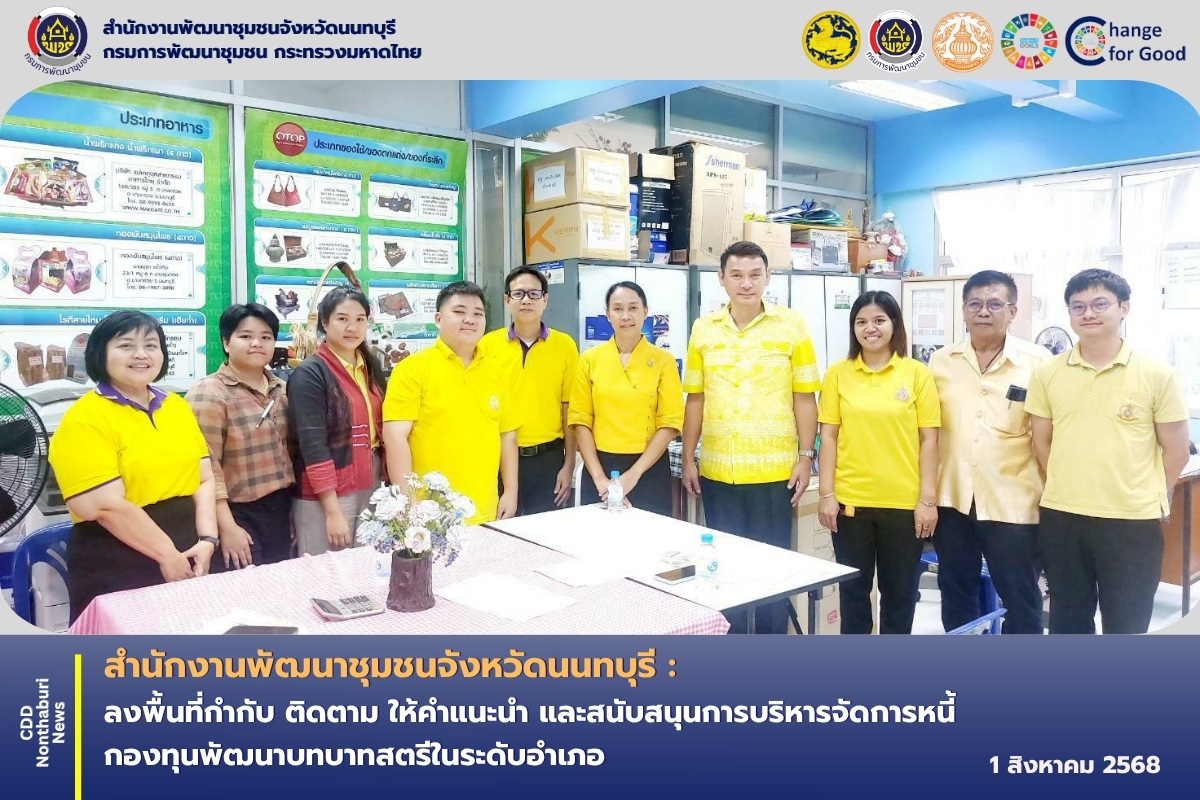 วันศุกร์ที่ 1 สิงหาคม 2568 เวลา 13.30 น. ณ สำนักงานพัฒนาชุมชนอำเภอบางกรวย