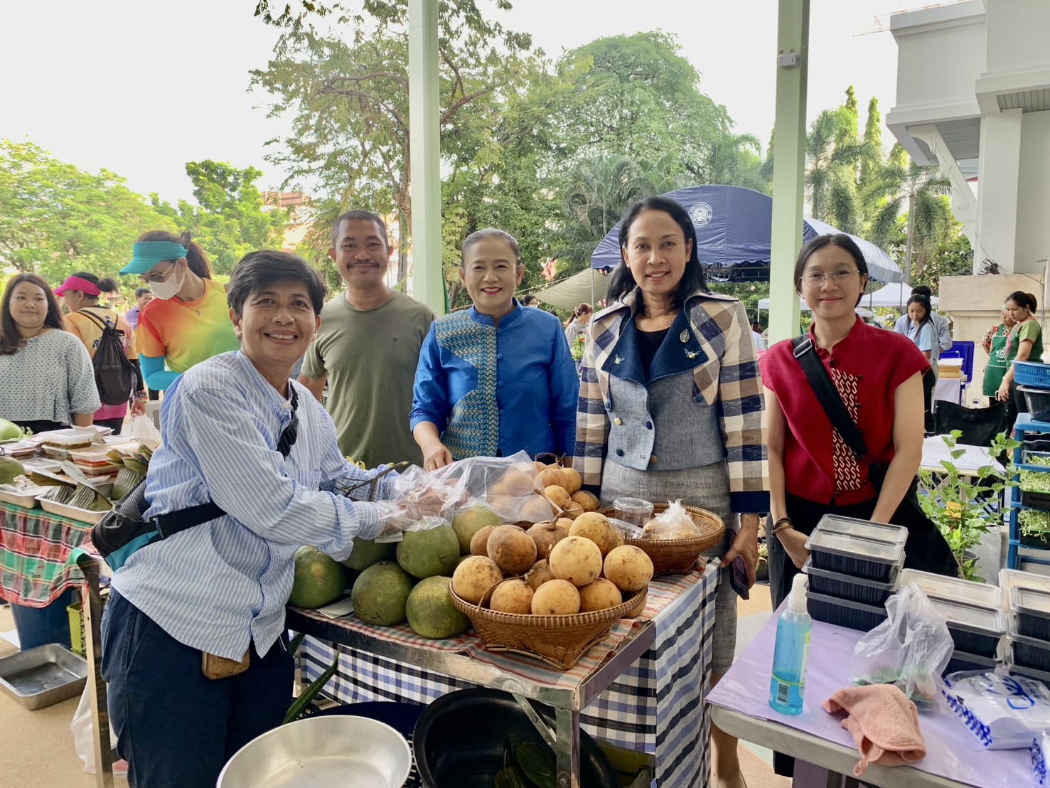 นางประภา ปานนิตยกุล พัฒนาการจังหวัดนนทบุรี เข้าเยี่ยมชมและให้กำลังใจผู้ประกอบการตลาดโดมนนท์ โดยสำนักงานพัฒนาชุมชนจังหวัดนนทบุรีเป็นหนึ่งในหน่วยงานในการจัดตลาดครั้งนี้ ซึ่งมีร้านค้าเข้าร่วม จำนวน 18 ร้าน อาทิ กระเพาะปลา ผักไทย ไส้กรอกอีสาน น้ำผลไม้ กระเป๋า เครื่องประดับ เป็นต้น ในการนี้นางวชิรพร แจ้งเอี่ยม ผู้อำนวยการกลุ่มงานส่งเสริมการพัฒนาชุมชน และเจ้าหน้าที่พัฒนาชุมชนร่วมตรวจเยี่ยมร้านค้า ซึ่งเป็นกลุ่มผู้ผลิต ผู้ประกอบการ OTOP กลุ่มอาชีพ และกลุ่มสตรีของจังหวัดนนทบุรี
