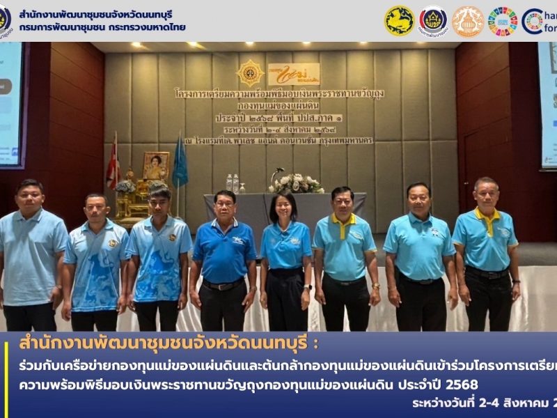 พช.นนทบุรี ร่วมกับเครือข่ายกองทุนแม่ของแผ่นดินและต้นกล้ากองทุนแม่ของแผ่นดินเข้าร่วมโครงการเตรียมความพร้อมพิธีมอบเงินพระราชทานขวัญถุงกองทุนแม่ของแผ่นดิน ประจำปี 2568