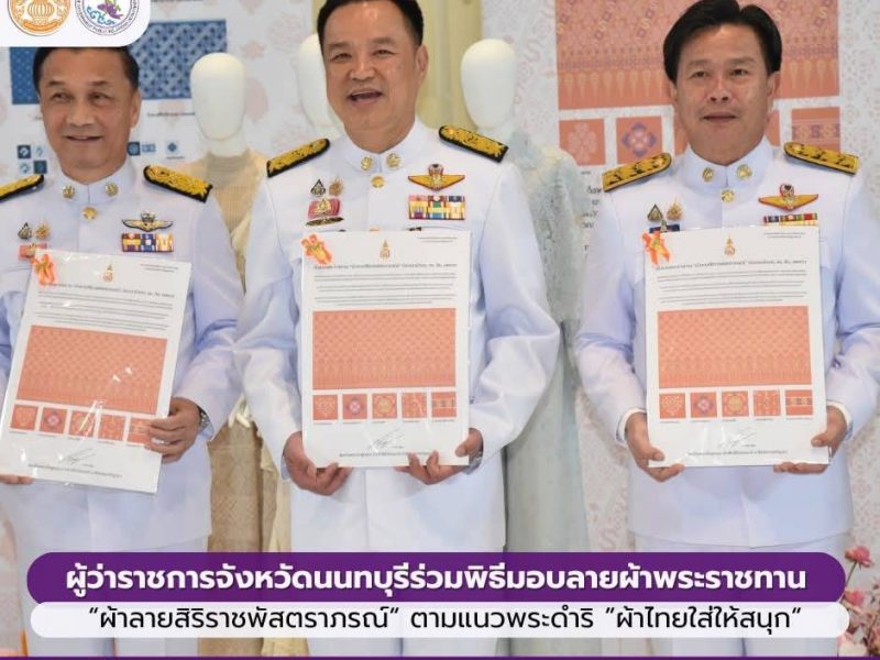 ผู้ว่าราชการจังหวัดนนทบุรีร่วมพิธีมอบลายผ้าพระราชทาน “ผ้าลายสิริราชพัสตราภรณ์“ ตามแนวพระดำริ ”ผ้าไทยใส่ให้สนุก“ ของสมเด็จพระเจ้าลูกเธอ เจ้าฟ้าสิริวัณณวรี นารีรีตนราชกัญญา