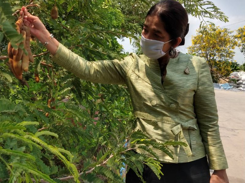 นางรักใจ กาญจนะวีระ ตำแหน่งพัฒนาการจังหวัดนนทบุรี ยี่ยมพื้นที่ที่เข้าร่วมกิจกรรม “โคก หนอง นาโมเดล” ของนางวัฒนา เอมเสม ผู้ใหญ่บ้านหมู่ที่ 6 ตำบลหนองเพรางาย อำเภอไทรน้อย