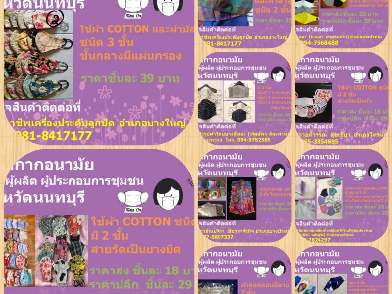 หน้ากากผ้า “ราคาเริ่มต้น 20 บาท” (ปลีก-ส่ง) จากผู้ผลิตผู้ประกอบการจังหวัดนนทบุรี