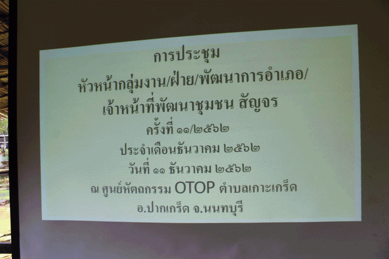 สรุปผลการขับเคลื่อนงานของสำนักงานพัฒนาชุมชนจังหวัดนนทบุรีประจำเดือนพฤศจิกายน 2562