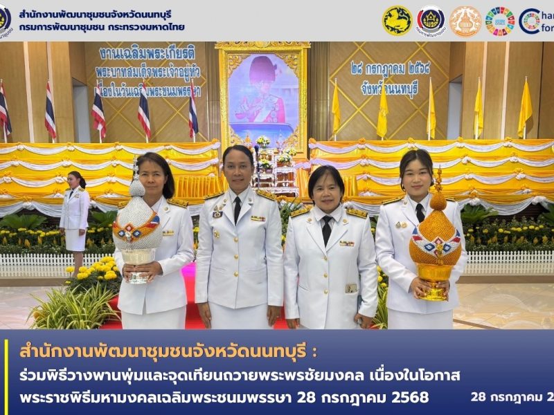 สพจ.นนทบุรี ร่วมพิธีวางพานพุ่มและจุดเทียนถวายพระพรชัยมงคล เนื่องในโอกาสพระราชพิธีมหามงคลเฉลิมพระชนมพรรษา 28 กรกฎาคม 2568