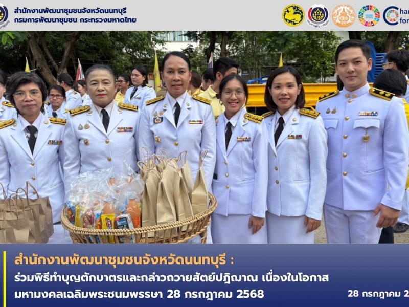สพจ.นนทบุรี ร่วมพิธีทำบุญตักบาตรและกล่าวถวายสัตย์ปฎิฌาณ เนื่องในโอกาสมหามงคลเฉลิมพระชนมพรรษา 28 กรกฎาคม 2568