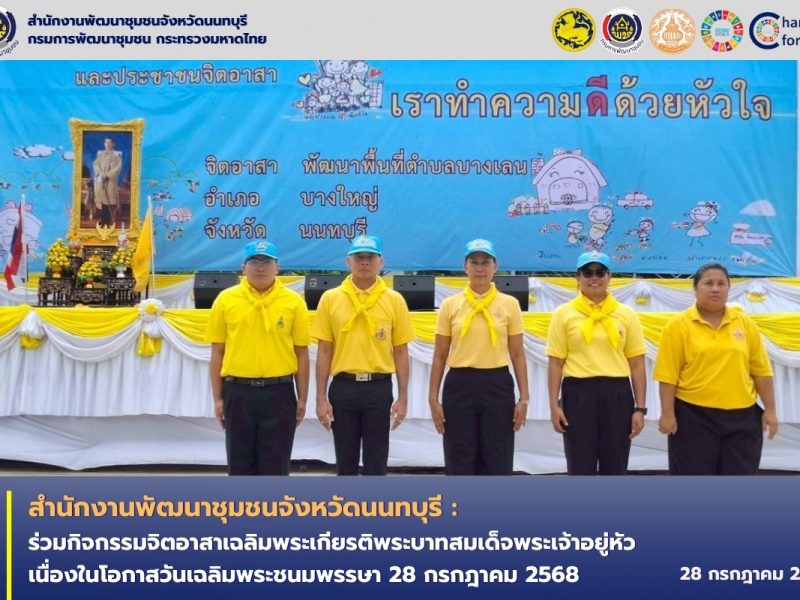 สพจ.นนทบุรี ร่วมกิจกรรมจิตอาสาเฉลิมพระเกียรติพระบาทสมเด็จพระเจ้าอยู่หัว เนื่องในโอกาสวันเฉลิมพระชนมพรรษา 28 กรกฎาคม 2568