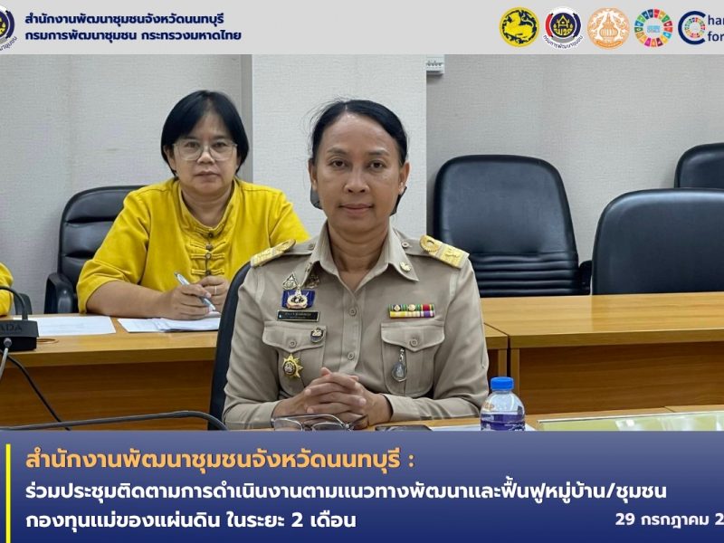 สพจ.นนทบุรี ร่วมประชุมติดตามการดำเนินงานตามเเนวทางพัฒนาเเละฟื้นฟูหมู่บ้าน/ชุมชน กองทุนเเม่ของแผ่นดิน ในระยะ 2 เดือน