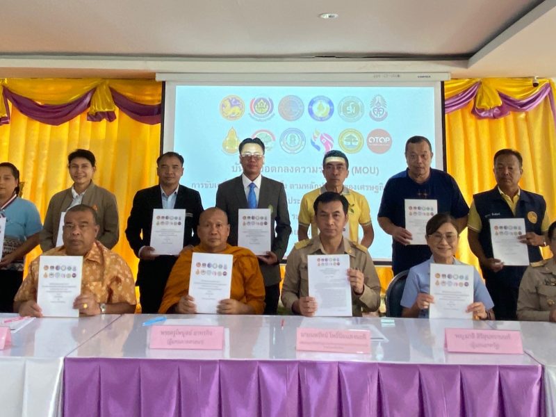 สพอ.ไทรน้อยดำเนินการลงนามบันทึกข้อตกลงความร่วมมือ (MOU) และประกาศวาระการขับเคลื่อน “ตำบลเข้มแข็ง ตามหลักปรัชญาของเศรษฐกิจพอเพียง” ประจำปีงบประมาณ พ.ศ. ๒๕๖๘