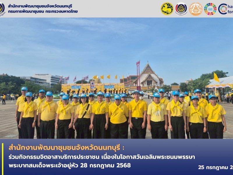 สพจ.นนทบุรี ร่วมกิจกรรมจิตอาสาบริการประชาชน เนื่องในโอกาสวันเฉลิมพระชนมพรรษา พระบาทสมเด็จพระเจ้าอยู่หัว 28 กรกฎาคม 2568