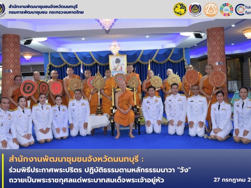 สพจ.นนทบุรี ร่วมพิธีประกาศพระปริตร ปฏิบัติธรรมตามหลักธรรมนาวา “วัง” ถวายเป็นพระราชกุศลแด่พระบาทสมเด็จพระเจ้าอยู่หัว