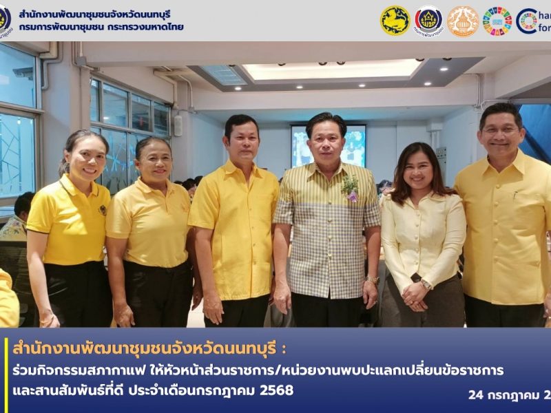 สพจ.นนทบุรีร่วมกิจกรรมสภากาแฟ ให้หัวหน้าส่วนราชการ/หน่วยงานพบปะแลกเปลี่ยนข้อราชการและสานสัมพันธ์ที่ดี ประจำเดือนกรกฎาคม 2568
