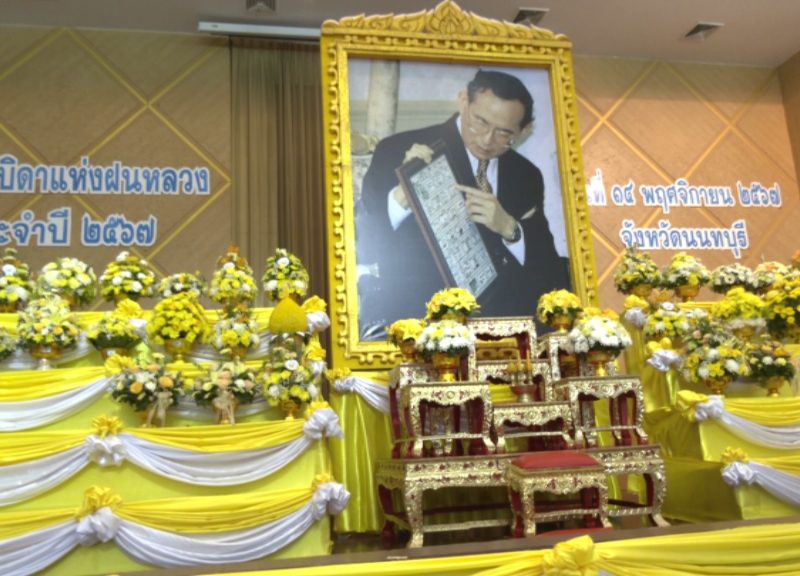 จังหวัดนนทบุรี ร่วมพิธีถวายราชสักการะวางพานพุ่มดอกไม้สดเบื้องหน้าพระบรมฉายาลักษณ์พระบาทสมเด็จพระบรมชนกาธิเบศร มหาภูมิพลอดุลยเดชมหาราช บรมนาถบพิตร เนื่องในวันพระบิดาแห่งฝนหลวง ประจำปี 2567