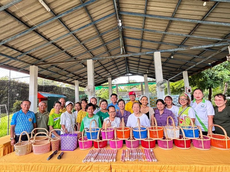🎂🎊🎊พช.บางกรวย ร่วมทำบุญถวายภัตตาหารเนื่องในโอกาสครบรอบ 1 ปี การก่อตั้งศูนย์ทอผ้าจังหวัดนนทบุรี