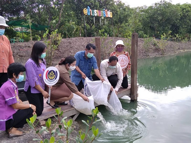 พช.นนทบุรี จับมือ ประมงจังหวัด ปล่อยพันธุ์ปลา เพื่อเสริมสร้างระบบนิเวศ ภายในพื้นที่ “โคก หนอง นา พช. นนทบุรี”