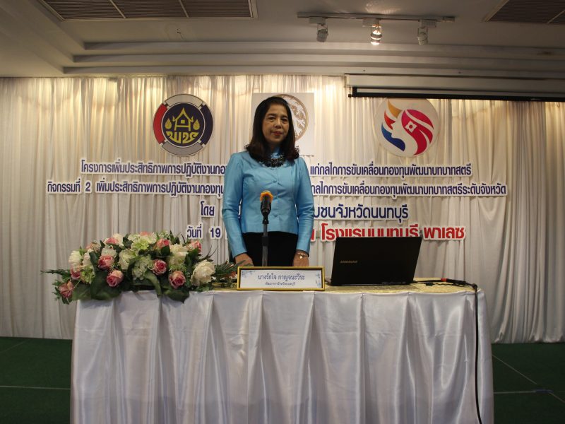 พช.นนทบุรี จัดอบรมเพิ่มประสิทธิภาพการปฏิบัติงานกองทุนพัฒนาบทบาทสตรี แก่กลไกการขับเคลื่อนกองทุนพัฒนาบทบาทสตรี