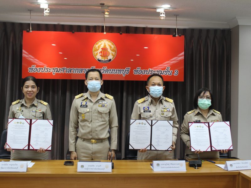 พช.นนทบุรี จับมือ 2 ภาคีเครือข่ายระดับจังหวัด ทำMOU ประสานความร่วมมือเพื่อพัฒนาพื้นที่ต้นแบบการพัฒนาคุณภาพชีวิตตามหลักทฤษฎีใหม่ประยุกต์สู่ “โคก หนอง นา โมเดล” ของจังหวัดนนทบุรี