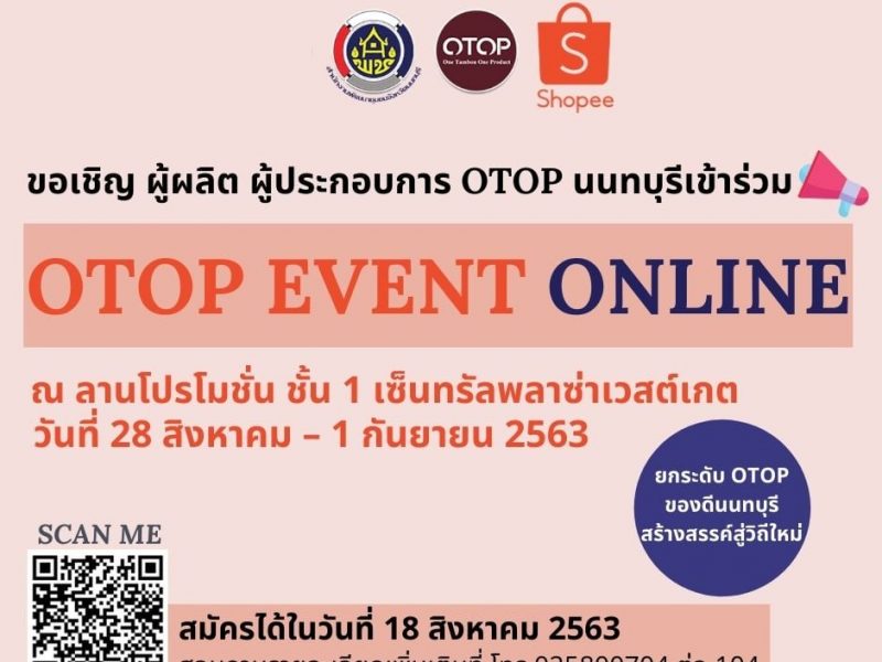 สำนักงานพัฒนาชุมชนจังหวัดนนทบุรี ขอเชิญผู้ผลิต ผู้ประกอบการ OTOP นนทบุรีร่วมกิจกรรมการตลาดออนไลน์