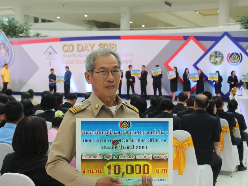 หมู่บ้านสารสนเทศชุมชนฯ ระดับเขต ปี 2561 ผู้แทนคณะกรรมการหมู่บ้านสารสนเทศฯ หมู่ที่ 10 บ้านนาคเกี้ยว ตำบลบางม่วง อำเภอบางใหญ่ จังหวัดนนทบุรี เข้ารับโล่รางวัลพร้อมเงินรางวัล จำนวนเงิน 10,000 บาท (หนึ่งหมื่นบาทถ้วน)