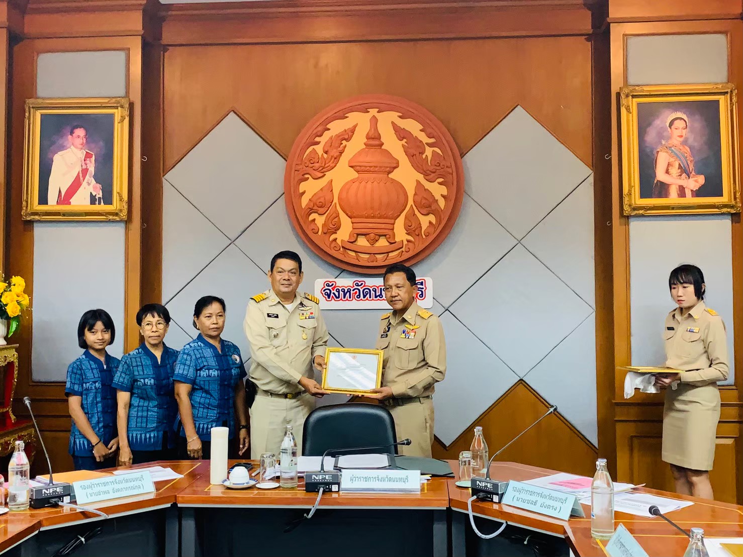 @นนทบุรี>วันที่ 29 เมษายน 2562 ณ ห้องประชุมรัตนาธิเบศร์ ชั้น 5 ศาลากลางจังหวัดนนทบุรี : นายภานุ แย้มศรี ผู้ว่าราชการจังหวัดนนทบุรี เป็นประธานในการประชุมคณะกรมการจังหวัด หัวหน้าส่วนราชการ หัวหน้าหน่วยงาน ฯลฯ จังหวัดนนทบุรี ครั้งที่ 4/2562 เรื่องก่อนระเบียบวาระการประชุม ท่านประธาน กรุณาให้เกียรติเป็นผู้มอบเกียรติบัตร หมู่บ้านสารสนเทศชุมชนดีเด่นเพื่อการพัฒนาเศรษฐกิจชุมชนและพัฒนาคุณภาพชีวิต และสารสนเทศตำบลต้นแบบเพื่อการพัฒนาคุณภาพชีวิต ประจำปี 2562 ระดับจังหวัด จำนวน 6 อำเภอ 6 ราย